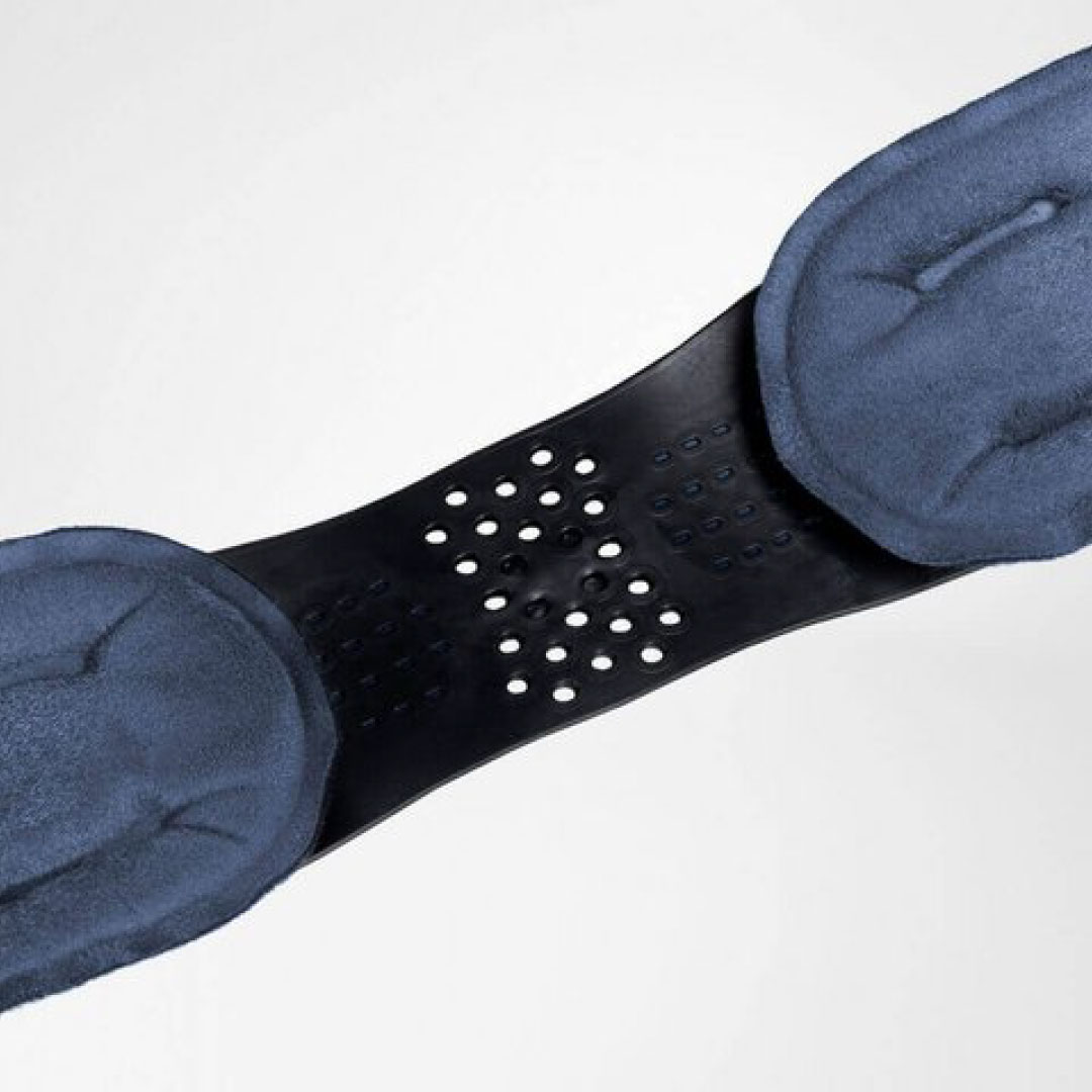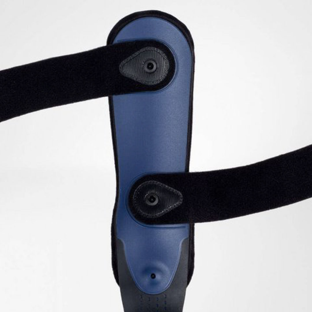 Combined with shoes, AirLoc stabilizes the ankle and prevents recurring sprains following an acute injury. Two anatomically contoured, cushioned plastic shells are connected flexibly below the heel, allowing the orthosis to adapt perfectly to the width of the foot. Thanks to an inflatable air cushion integrated into the outer shell, AirLoc’s shape can be individually adjusted to the degree of swelling when putting on the orthosis.