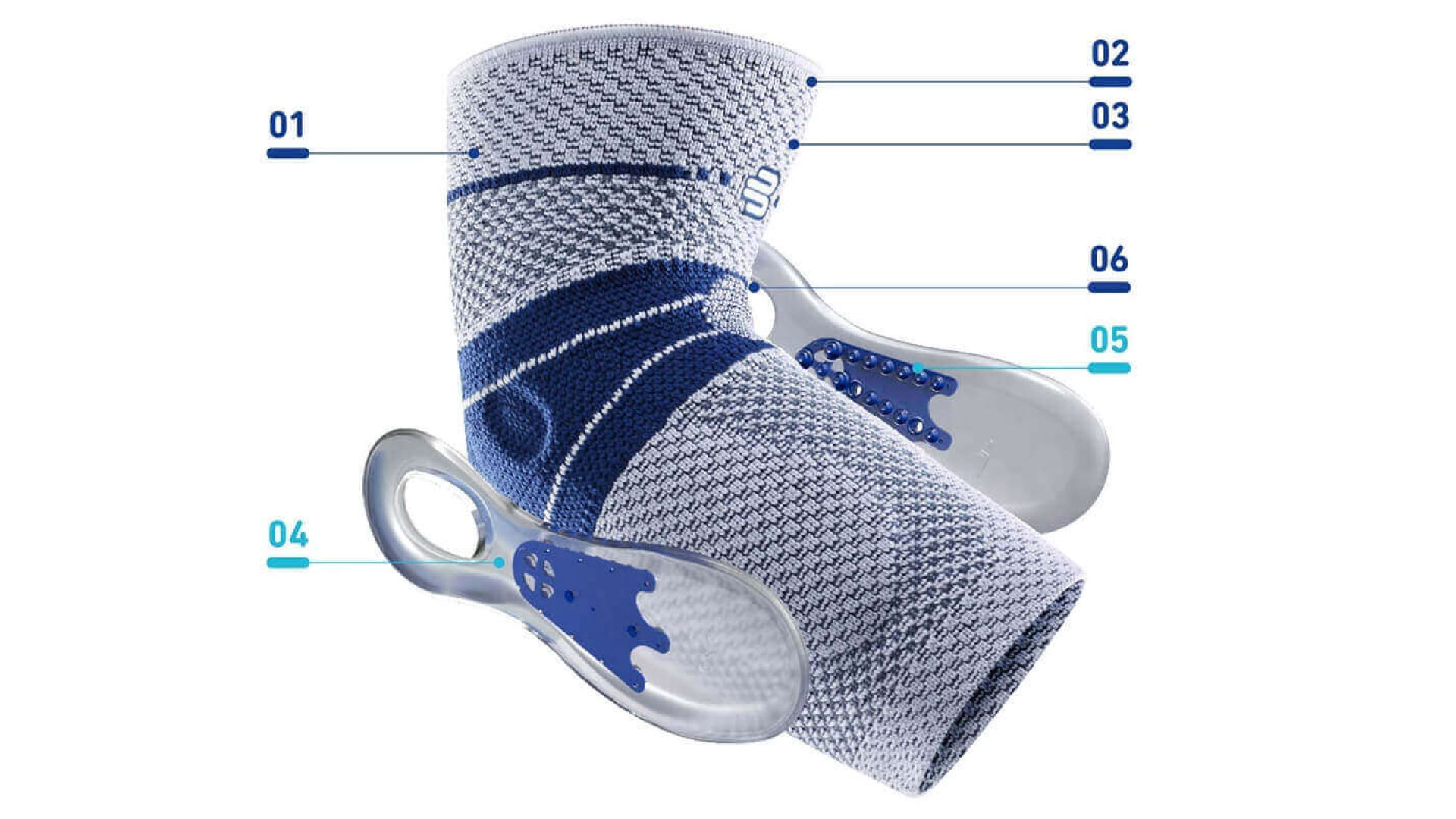 Excessive strain due to sports is far from the only reason your elbow can become a problem area. A contusion, surgery or simply excessive strain of the tendon system is all it takes. EpiTrain relieves and stabilizes the joint. It can reduce pain and improve mobility. Particularly if your elbow frequently gives you trouble, you will appreciate the elbow support as a preventive tool. Two functional cushions, or pads, are incorporated into the support at the inside and outside of the joint. Equipped with novel massage nubs, they provide local relief along the muscles and tendon insertions. Special cutouts around the protruding bones of the elbow prevent unpleasant pressure and ensure correct positioning of the support.