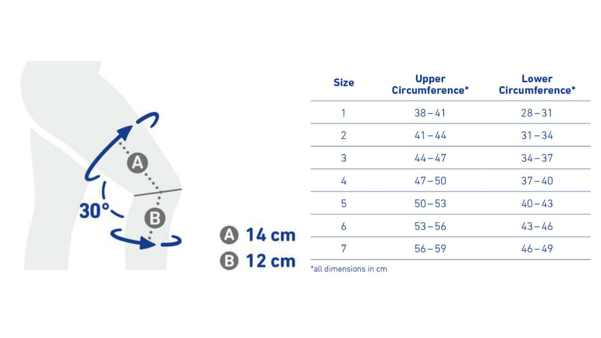 Lateral joint splints guide your knee and provide additional protection against undesired movements. Straps on the thigh and lower leg guarantee a firm and secure fit.
