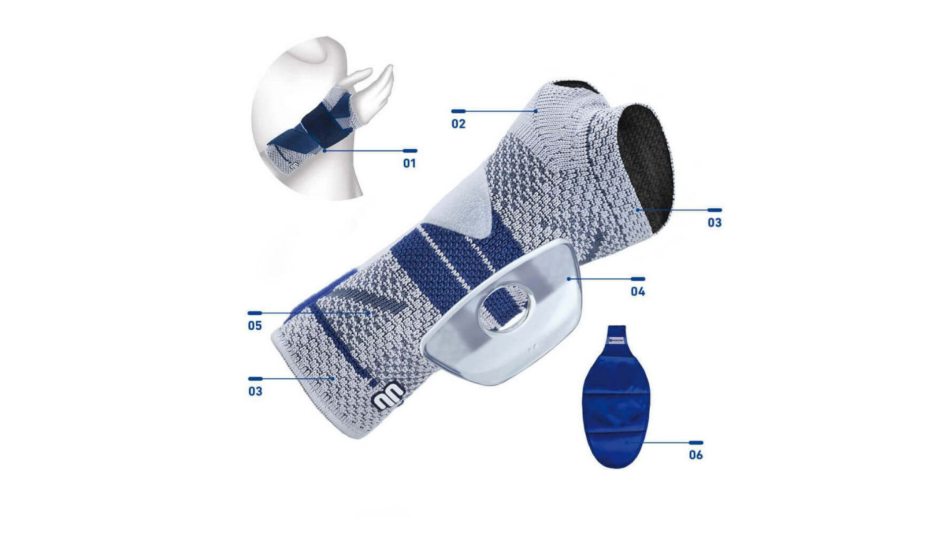 When treatment progresses, problems are alleviated, and the wrist becomes more mobile, the stabilizing effect of the ManuTrain can be reduced: first, do without the stabilizing strap when wearing the support, then without the elastic fascia strap.