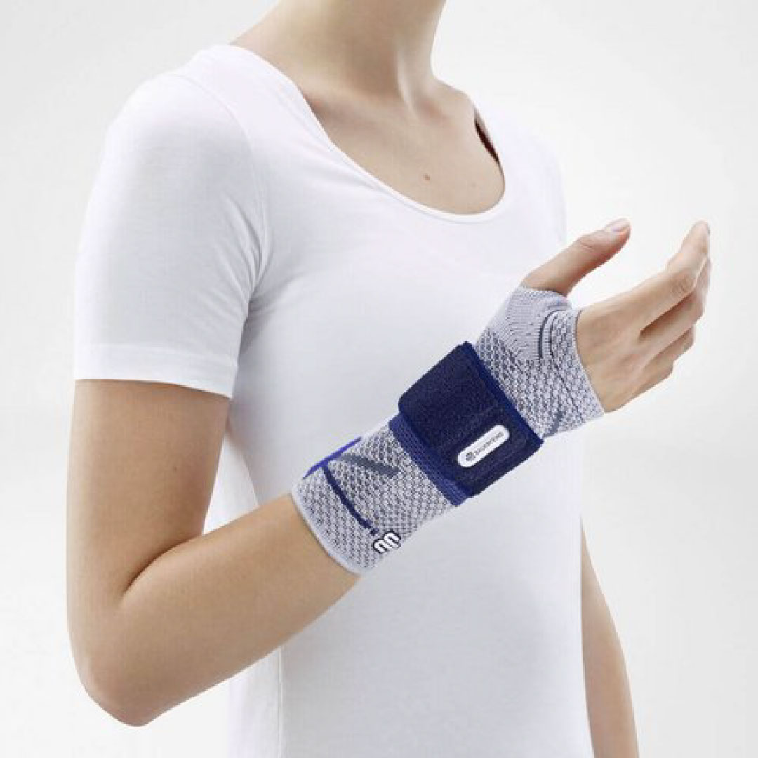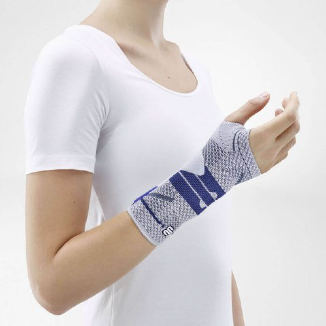 In cases of acute injury, ongoing strain, chronic wear, or after surgery, the wrist needs to be immobilized and provided with reliable stabilization. Restoring the mobility of the wrist as quickly as possible is just as important. Bauerfeind’s ManuTrain wrist support helps with this: its two-part strap system allows for individual adjustment for optimum stabilization and pain relief, without limiting grasping movements. The strap system is wrapped around the palm and wrist to provide immediate pain relief. The degree of stabilization can be reduced over time as the therapy progresses and the condition improves.